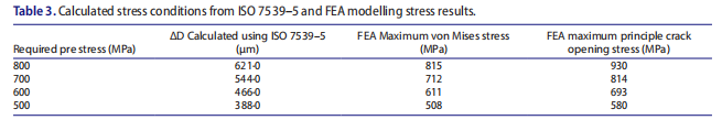 FEA modellering förutsäger den fleraxliganaturen av spänningstillståndet i ett fastspänt C-ring och den observerade krackning i experimentell testning stöder modelleringsresultaten. Genom bestämning av den effektiva spänningen genom von Mises kriteriet, FEA beräknade ekvivalenta spännings stämmer med att från ISO 7539-5.